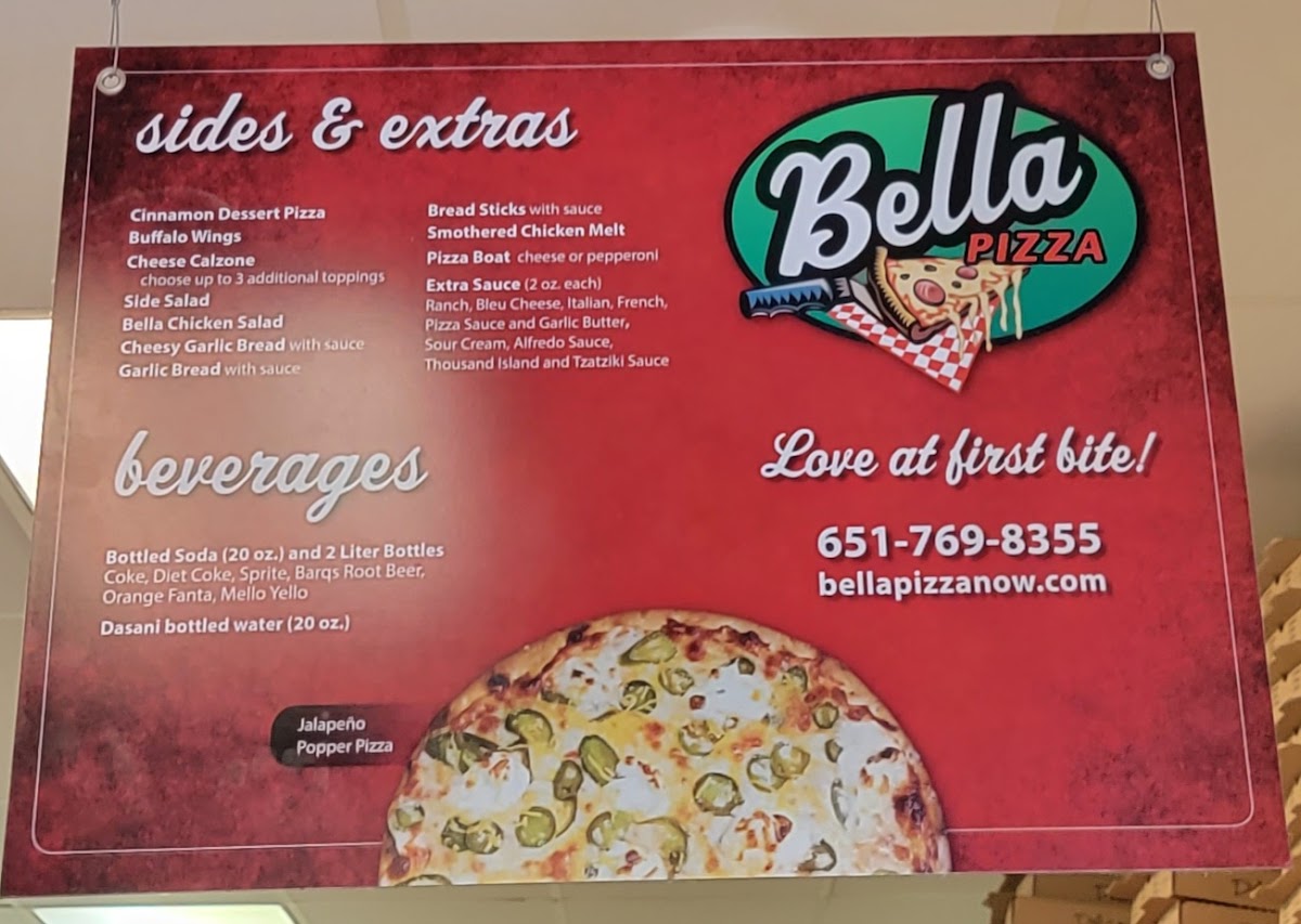 If you're craving mouthwatering pizza and comforting Italian dishes, Bella Pizza Menu has something to satisfy every taste. Located at 7155 80th St S #160, Cottage Grove, MN, this cozy spot offers a delicious variety of pizzas made with the freshest ingredients, from classic Margherita to hearty meat lovers' options. Each pizza is hand-crafted with a perfect blend of cheese, sauce, and toppings, baked to perfection in their signature oven.